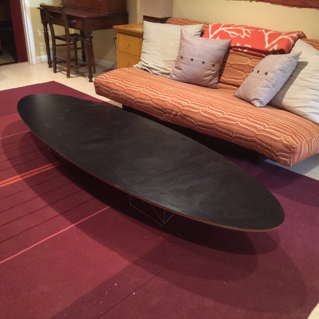 The eames wire base elliptical accent table has a long, low profile and makes a strong and beautiful statement wherever it is.